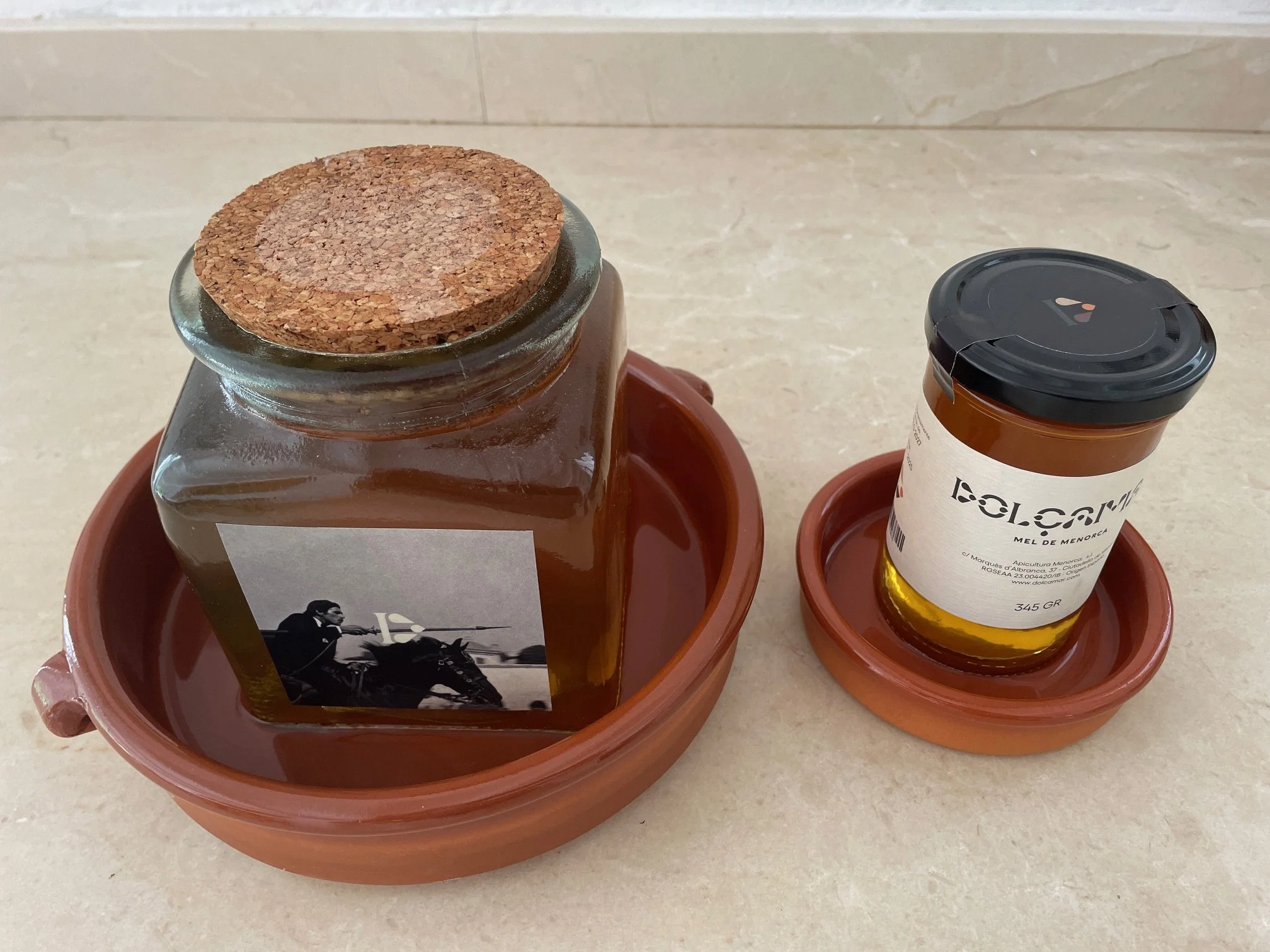 A Minorque il y parfois des fourmis et les fourmis ça aime le miel. Pour éviter que vos pots se remplissent de fourmis, il y a une méthode connue de tous les minorquins et qui marche très bien : Poser vos pots dans une soucoupe en terre et mettez un fond d’eau dans la soucoupe. Cela fonctionnera comme des douves autour d’un château et protégera votre miel des fourmis… et voilà !